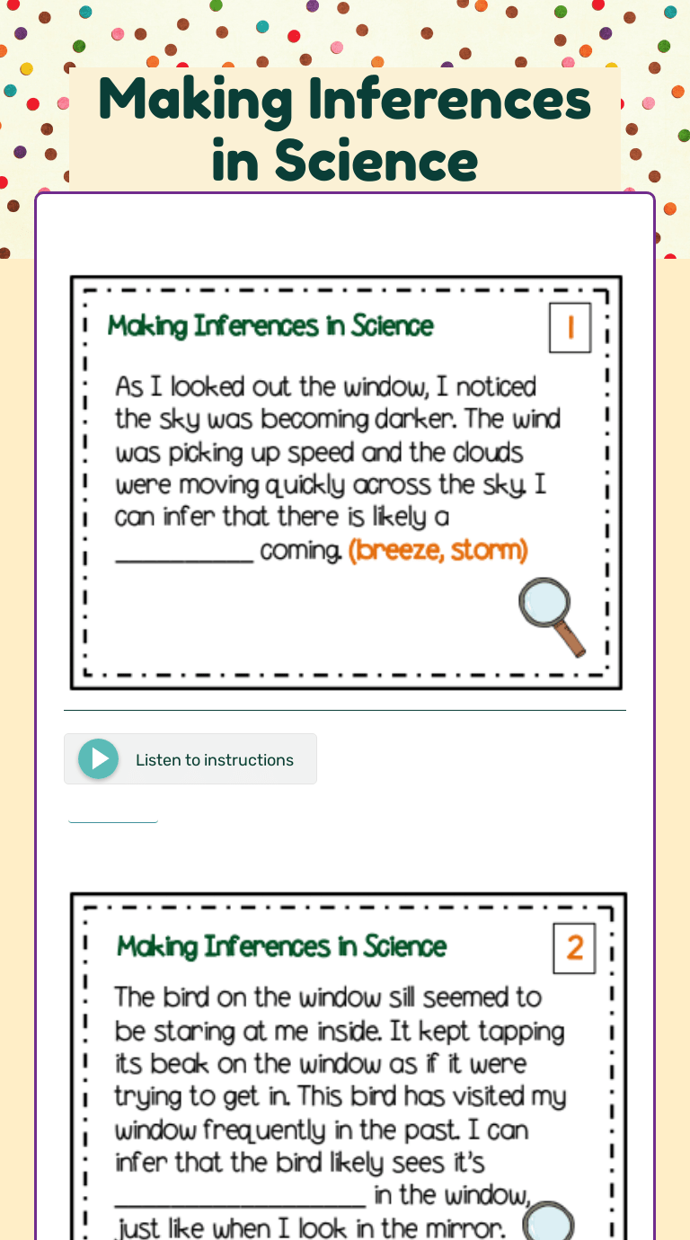 Use a variety of genres to practice making inferences. Making inferences _ teacher instructions: Have students practice justifying their interpretations, being explicit about … Check your students' knowledge and unleash their imaginations with creative coding projects. To get started, all you have to do is set up your teacher account. Helping your child understand when information is implied (or not directly stated) will improve her skill in drawing conclusions and making inferences. Sometimes you need to take clues from the story … In contrast, inferences are what we figure out based on an experience. Make inferences regarding various details and draw conclusions about the text as a whole. 28.06.2021 · making inferences helps us create conclusions about what is happening in a situation. Search making inferences in nonfiction educational resources create comprehensive readers with these resources that have your students put their skills to the test. 06.10.2020 · making inferences in texts a writer doesn't always tell you everything you need to know. 01.08.2019 · making inferences requires students to combine what they are reading with what they already know, to reach into their own personal knowledge and apply it to what they are reading.